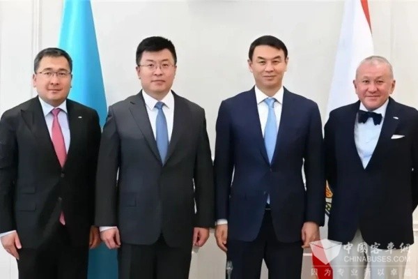(左二:比亞迪中亞及高加索地區(qū)總經理曹爽,右二:阿拉木圖市長達爾漢·薩特巴爾迪)